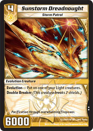 Card Text: | Evolution - Put on one of your Light creatures. Double Breaker (This creature breaks 2 shields.) |