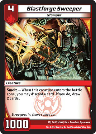 Card Text: | Smelt - When this creature enters the battle zone, you may discard a card. If you do, draw 2 cards. |