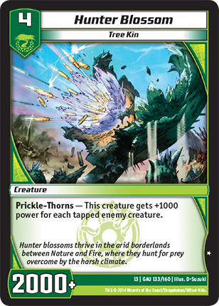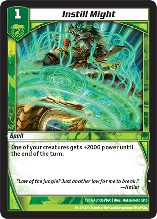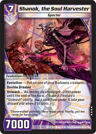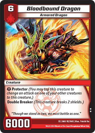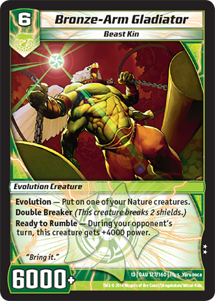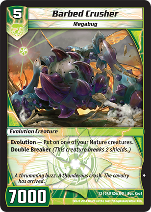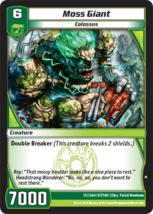 Might of Oak - All your creatures that have power 6000 or more have "Double Breaker." (A creature that has "Double Breaker" breaks 2 shields.)