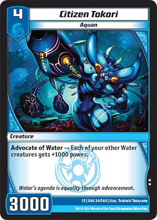 Advocate of Water - Each of your other Water creatures gets +1000 power.
