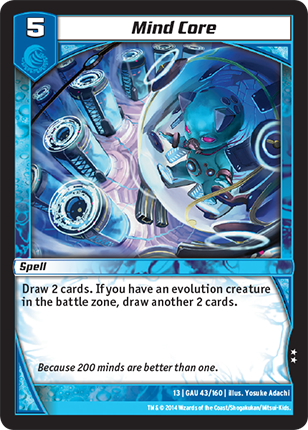 Put the top card of your deck into your shield zone face down as a new shield. If you have an evolution creature in the battle zone, put another card from the top of your deck into your shield zone face down as a new shield.