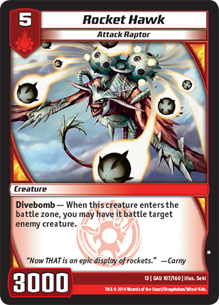 Divebomb - When this creature enters the battle zone, you may have it battle target enemy creature.