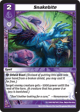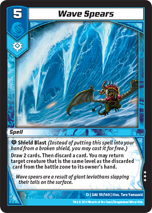 Shield Blast (Instead of putting this spell into your hand from a broken shield, you may cast it for free.)