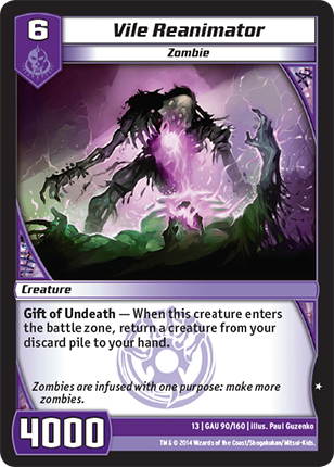 Gift of Undeath - When this creature enters the battle zone, return a creature from your discard pile to your hand.